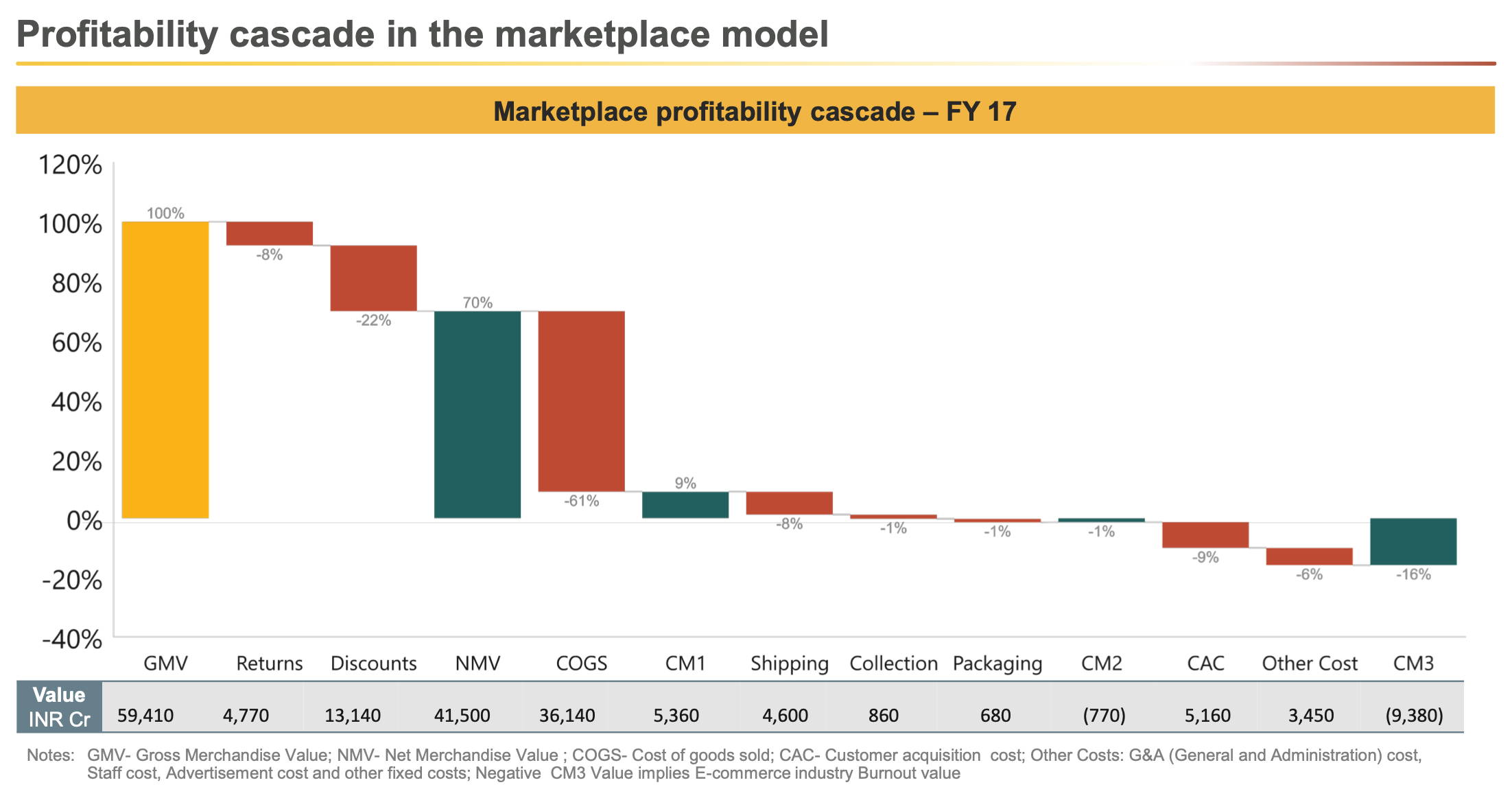 Another good technique to show your P&L is using price waterfalls (profitability cascade). Above is a good example from mature Indian marketplace players. How come they can still raise while looking unprofitable? Because they show the stickiness of their old cohorts, and they are still in the stage of acquiring new customers. This is why Prime is the bread and butter of Amazon and has one of the highest penetration and yearly renewal rates (PS they copied the Costco playbook). As they know, after X number of purchases, an average amazon customer becomes profitable and stays for life.